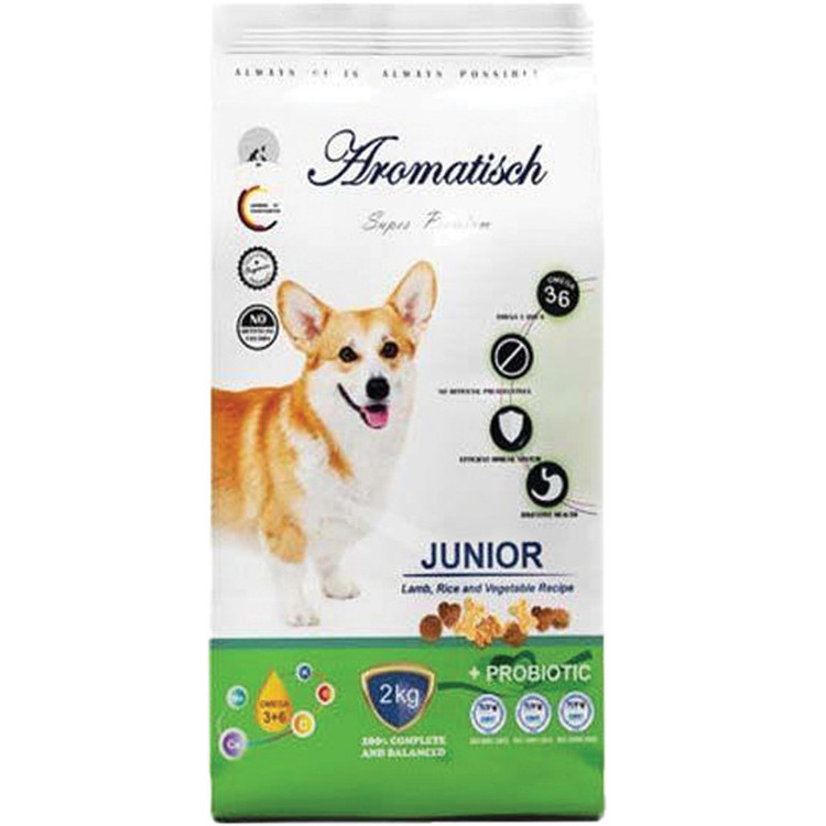 این غذا مخصوص سگ های نژاد کوچک با طعم گوشت بره می باشد. فرمول این غذای خشک مناسب سگ های جوان 5 تا 12 ماه طراحی شده و از نظر مواد غذایی کاملا بالانس شده است. ترکیبات این غذای آروماتیش Aromatisch به حفظ سلامت و شادابی پوست و موی سگ های جوان کمک می کند.