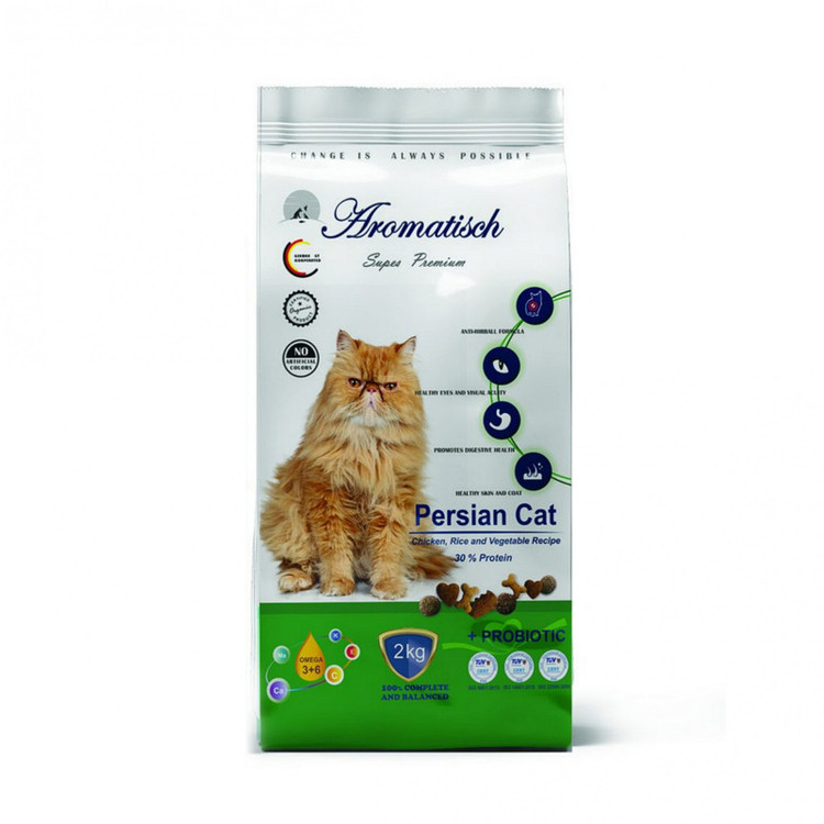 غذای گربه پرشین آروماتیش با فرمولاسیون آلمانی و کیفیت سوپر پریمیوم حاوی گوشت مرغ- برنج سبزیجات میباشد . این محصول دارای باکتری های فعال پروبیوتیک می باشد که به هضم و جذب بهتر غذا کمک کرده و به علاوه باعث تقویت دستگاه گوارش گربه ها می شود . این محصول دارای ویتامین های ضروری و اسیدهای چرب امگا سه و شش می باشد