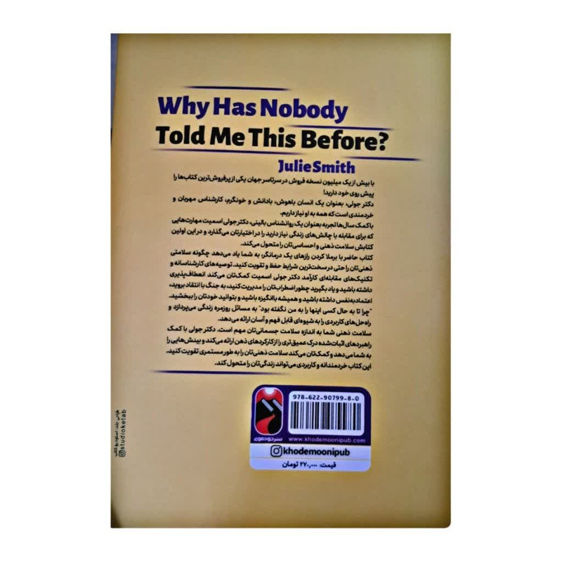 دکتر جولی بعنوان یک انسان باهوش، با دانش و خونگرم، کارشناس مهربان و خرد مندی است که همه به او نیاز داریم. با سال ها تجربه بعنوان یک روانشناس بالینی، دکتر جولی اسمیت مهارت هایی که برای مقابله با چالش های زندگی نیاز دارید را در اختیارتان می گذارد و در این اولین کتابش سلامت ذهنی و احساسی تان را متحول می کند.