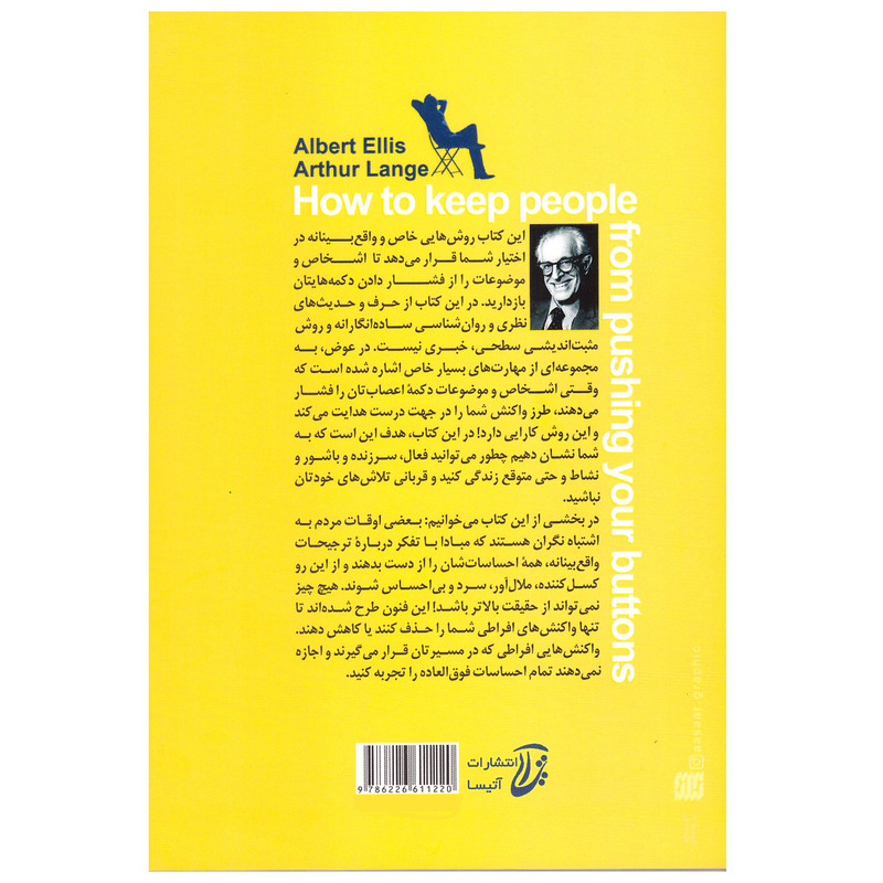 در کتاب نمیگذارم کسی اعصابم را به هم بریزد، نوشته آلبرت الیس وآرتور لانگ هدف این است که به شما نشان دهیم چطور میتوانید فعال، سرزنده و با شور و نشاط و حتی متوقع زندگی کنید و قربانی تلاشهای خودتان نباشید. ما مجموعهی قدرتمندی از مهارتها را به شما میدهیم تا رؤسا، همکاران، ناظران، همسر، بچهها، والدین، همسایهها، دوستان، عزیزان و دیگر کسانی که هر روز با آنها سروکار دارید، نتوانند اعصابتان را به هم بریزند. به ندرت همهی این اشخاص همیشه باعث ناراحتی ما میشوند، اما بسیاری از ما گهگاهی اجازه دادهایم کسی دکمهی اعصابمان را فشار دهد. دنیای امروز میتواند تاحدودی گیجکننده باشد، نه فقط در سطح جهانی، بلکه در زندگی روزمرهمان. تعجبی ندارد که در این دوران اشخاص و مسایلی این چنینی بهراستی میتوانند دکمههای اعصاب ما را فشار دهند. این ممکن است فردی باشد که دکمهی اعصاب ما را فشار میدهد: همکاری"همهچیزدان"، رئیسی زیادی منتقد، سرپرست و ناظری با حالت دفاعی، همسری بیاحساس، بچهای سرسخت، دوستی بهانهگیر، تعمیرکاری بیاعتنا، قوم و خویشی منفی. کتاب نمی گذارم کسی اعصابم را به هم بریزد (how to keep people from pushing your buttons) روشهایی خاص و واقعبینانه در اختیار شما قرار میدهد تا اشخاص و موضوعات را از فشار دادن دکمههایتان بازدارید. در این کتاب از حرف و حدیثهای نظری و روان شناسی سادهانگارانه، روش مثبتاندیشی سطحی، خبری نیست. در عوض، به مجموعهای از مهارتهای بسیار خاص اشاره شده است که وقتی اشخاص و موضوعات دکمهی اعصابتان را فشار میدهند، طرز واکنش شما را در جهت درست هدایت میکند و این روش کارایی دارد! زندگی کوتاه و ارزشمند است. دکتر آلبرت الیس (Albert Ellis) و آرتور لانگ (Arthur lange) به شما کمک خواهد کرد تا در کاری که انجام میدهید موفق شوید و از این سفر لذت ببرید. آنها به شما نشان خواهند داد چطور واکنشهای افراطیتان را نسبت به اشخاص و موضوعاتی که دکمههای اعصابتان را فشار میدهند، مهار کنید.