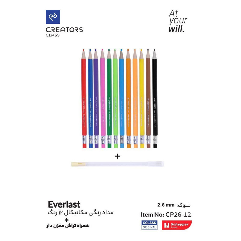 همه ما این تجربه ناخوشایند را داشته ایم که مدادرنگی هایمان پس از مدتی بر اثر تراشیده شدن کوتاه شده و از زیبایی جعبه مدادرنگیمان کاسته میشد. مداد رنگی مکانیکال (فشاری) سی.کلاس از محصولات سری کریتورز این شرکت با قابلیت تعویض نوک، این مشکل را برطرف کرده است. این مداد رنگی، همچون یک مداد نوکی، بدون نیاز به تراشیده شدن، همواره زیبایی اولیه اش را حفظ خواهد کرد. پس از تمام شدن نوک، فقط کافی است نوک جدیدی در آن قرار دهید و دوباره از رنگ آمیزی با آن لذت ببرید. همچنین با استفاده از تراش مخزندار همراه آن میتوانید نوک مدادها را تیز کنید.